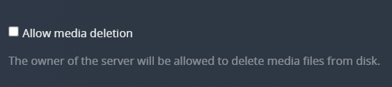The owner of the server will be allowed to delete media files from the disk.