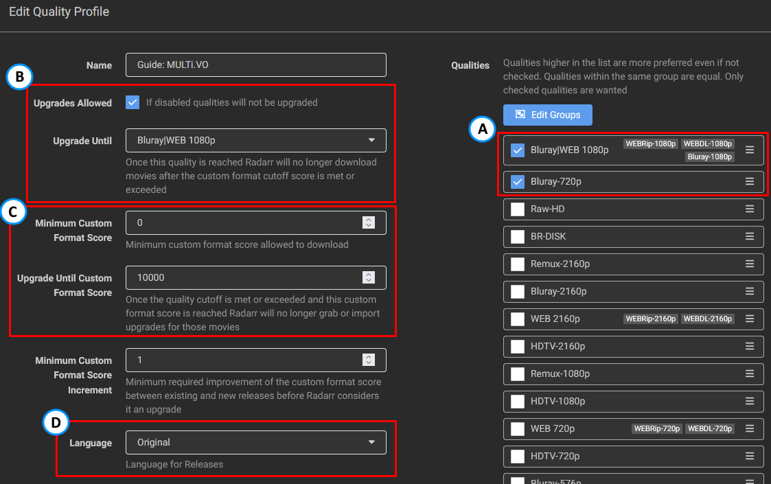 - Setting up a quality Profile to make use of the Custom Formats, as explained in How to setup Quality Profiles | Basics section.